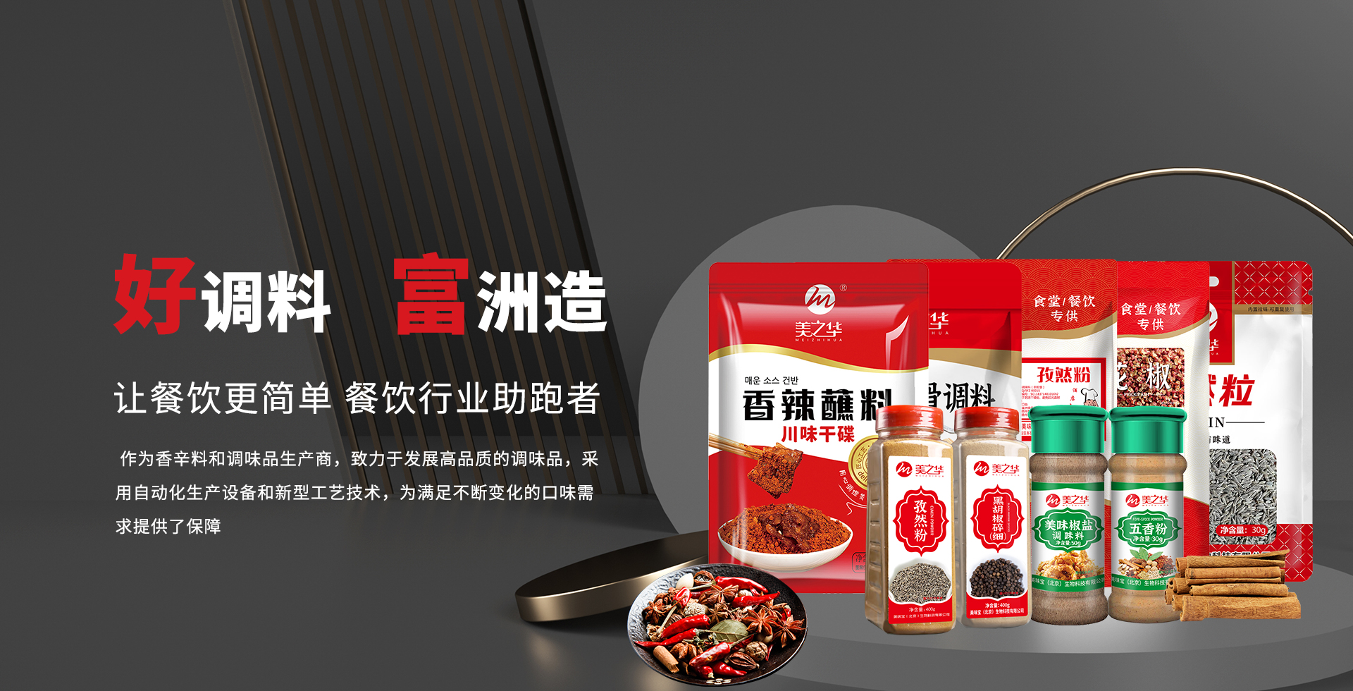 主要产品有:天然香辛料,酱卤肉调料,中西餐调料,食品撒料,烧烤串烧类腌料撒料、火锅底料/蘸料、蒸煮腌料、特色小吃系列